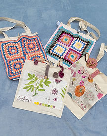 Ici je vous propose des sacs (essentiellement des sacs publicitaires en toile) que je transforme :